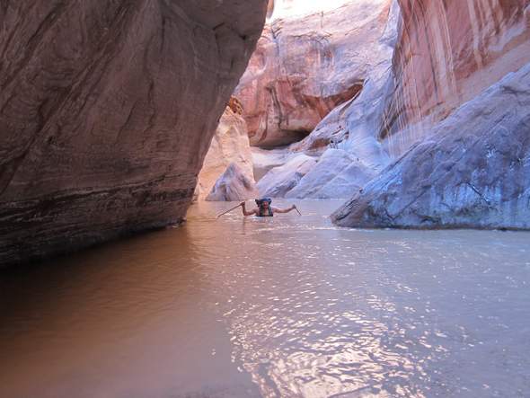 Jules and Alejandro quickly got their first tasted of Buckskin, as we came upon a pool of thigh-deep silty water with mud at the bottom. Apart from a couple of puddles, this was actually one of my drier trips through Buckskin. The Paria, as it turns out, would be a different matter.