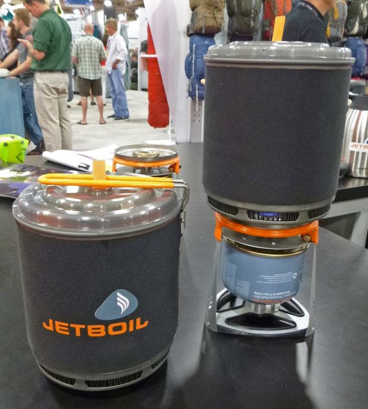 The Joule is a group cooking system that uses liquid canister fuel. It does weigh a bit, 25.2 ounces, but it’s a powerhouse. It’s more integrated than the Helios and has a large 2.5 liter pot with a fluxring on the bottom. It utilizes Jetboil’s latest burner technology, producing 10,000 BTU consistently even in colder temperatures, and has a push button igniter. MSRP will be $169.